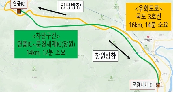 해당 기간 중 연풍IC 창원방향 진입이 불가하고, 창원방향 이용차량은 연풍IC에서 진출해 국도 3호선을 이용해 문경새재IC로 재진입할 수 있다.