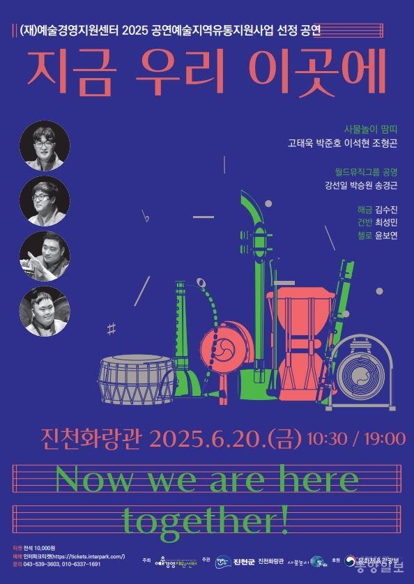 진천군은 오는 20일 진천 화랑관에서 사물놀이 땀띠의 ‘우리 지금 이곳에’ 국악 공연을 개최한다.