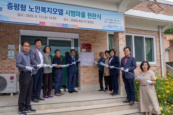 군은 지난 13일 ‘증평형 노인복지모델’의 시범마을 현판식이 증평읍 용강1리에서 가졌다.
