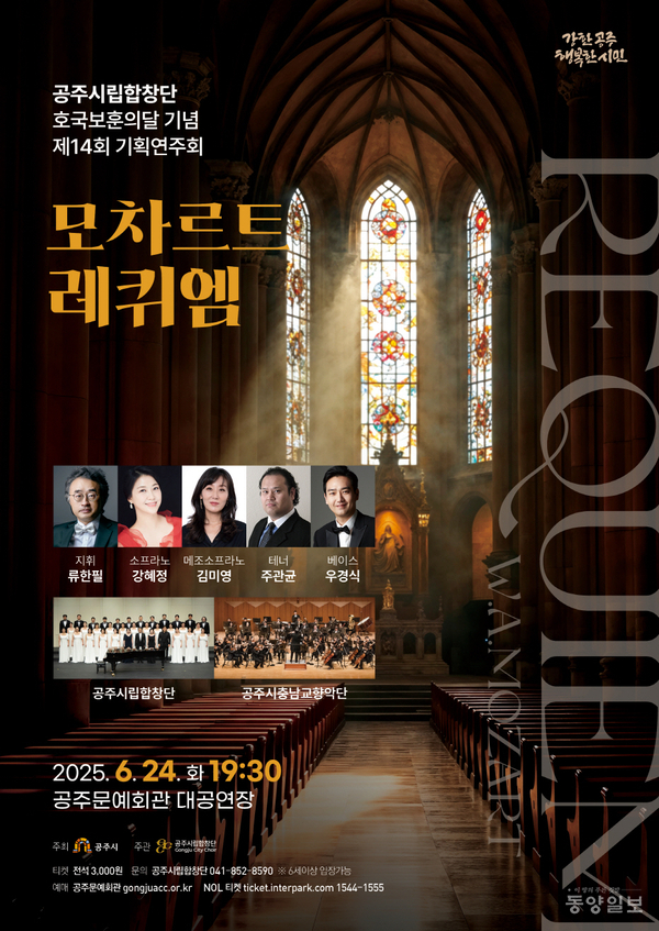 공주시는 오는 24일 오후 7시 30분 공주문예회관 대공연장에서 공주시립합창단의 14회 기획연주회 ‘모차르트 레퀴엠’을 개최한다.
