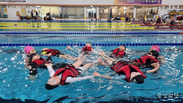 김레오(3년) 학생은 “처음에는 물에 두려움을 많이 느꼈지만, 전문 강사님들의 지도를 받으니 조금씩 물에 익숙해졌다”며 “특히 물속에서 대처 능력이 향상된 것 같다”고 말했다.