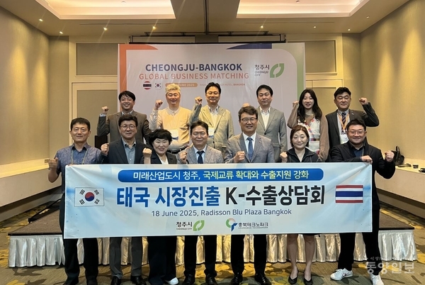 청주시와 충북테크노파크(충북TP)는 18일 태국 방콕에서 ‘태국시장진출 K-수출상담회’를 열었다.