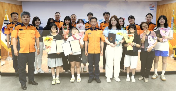 부여소방서(서장 김영배)는 18일 3층 대회의실에서 14회 일반인 심폐소생술 경진대회 참가자에게 소방서장 표창장을 수여했다.
