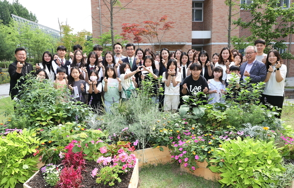 연수 후 윤건영 교육감을 비롯해 학생, 학부모, 교사가 함께 탄탄숲을 새롭게 조성하며 식물을 심고 가꾸는 시간을 가졌다.