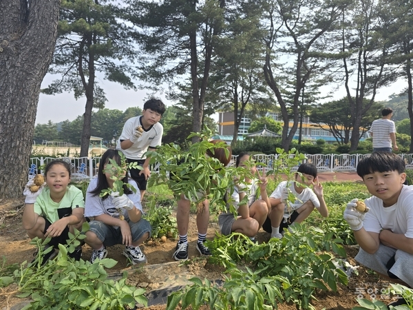 진천 학성초(교장 심미경)는 24일 여름 Green Week를 맞아 학생들이 심고 재배한 감자를 수확해 진천장애인복지관에 전달하는 나눔활동를 했다. 진천교육지원청
