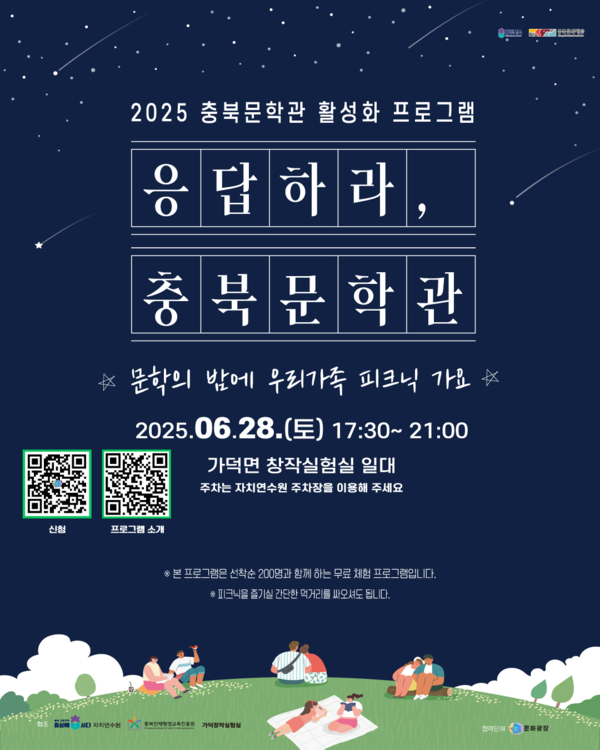 충북문화재단은 오는 28일(토) 오후 5~9시 자치연수원 가덕면 창작실험실 일대에서 ‘응답하라 충북문학관!’ 행사를 개최한다.