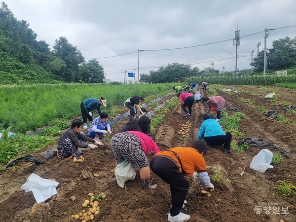 진천군 정신건강 가족협회(회장 사근실)는 26일 회원가족 등 30여명이 참여해 문백면 원덕로 인근 나눔 농장에서 직접 재배한 감자를 수확하는‘나눔 농장 감자 캐기’ 행사를 가졌다. 진천군
