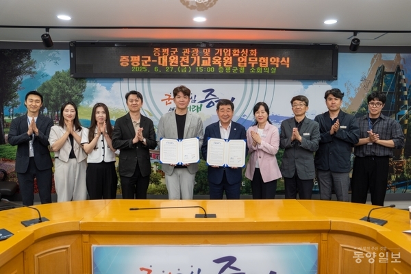 이번 협약은 대원전기교육원 교육생들을 대상으로 증평의 관광자원과 관광 프로그램을 소개해 지역 관광을 활성화하고, 군은 기업의 원활한 활동을 지원할 맞춤형 정책을 발굴 및 추진해 지역경제에 활력을 도모키로 했다.