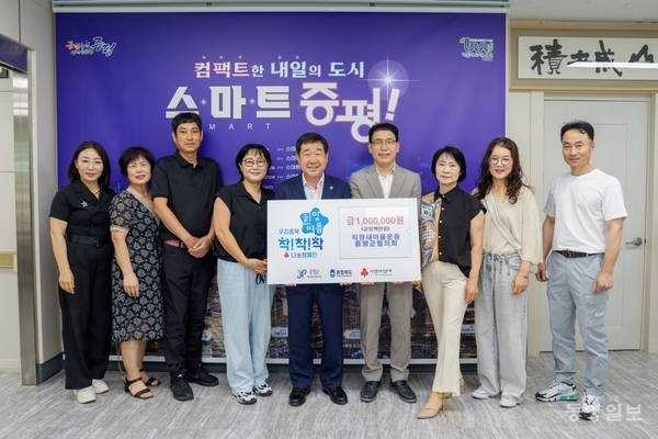 직장새마을운동증평군협의회(회장 신동규)가 27일 증평군을 방문해 성금 100만원을 전달했다.