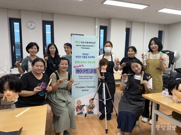 청주 봉명초(교장 이명희)가 봉명초의 이주배경 학부모의 지역 사회 적응과 한국 학부모와의 소통을 위해 청주시평생학습관과 업무협약을 맺고 헤어커트를 함께 배우는 프로그램을 운영하고 있다.