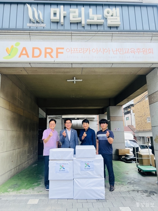 청주시체육회(회장 김진균)는 30일 서울시 용산구에 위치한 아프리카아시아난민교육후원회(ADRF)를 방문해 손편지와 실내화 400여켤레를 기증했다.
