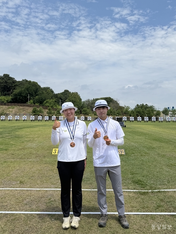 박수빈 선수는 리커브 50m 종목에서도 동메달을 차지했고 권나래 선수는 컴파운드 종목에 출전해 50m 더블 종목, 컴파운드 개인전, 혼성단체전에서 모두 동메달을 획득했다. 이태용 기자 bigbell@dynews.co.kr