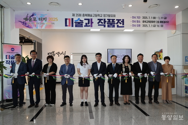 1일 열린 미술과 작품전시회 오프닝식에 참석한 윤건영 충북도교육감은 35회 정기발표회에 참석해 학생들을 격려했다.