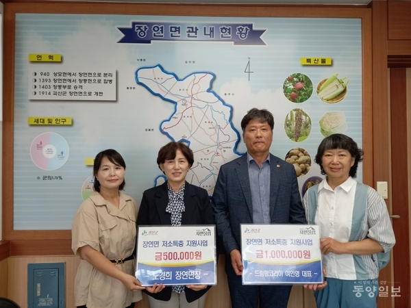 괴산군 장연면 드림팜 코리아 여인영 대표와 노경희 면장이 지난달 30일 지역사회보장협의체에 성금 100만원과 50만원을 각각 기탁하며 이웃을 보듬는 사랑을 베풀었다.괴산 심영선기자 sun5335@dynew.co.kr