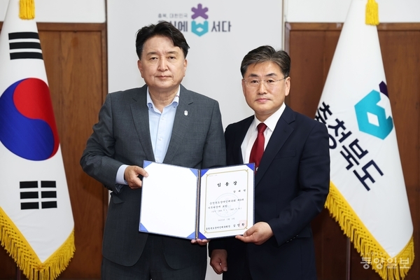 김영환 충북도지사는 1일 강 신임 사무처장에게 임용장을 전달했다.