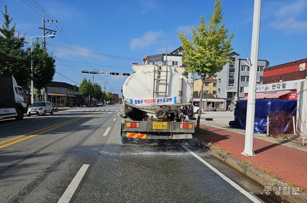 증평군이 7일부터 폭염 대비 살수차 운행에 돌입해 도심 열섬현상 완화에 나선다.