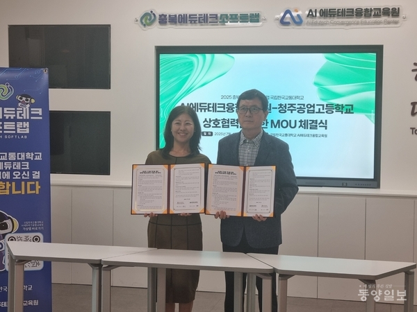 청주공고는 4일 한국교통대 AI 에듀테크융합교육원(원장 김인숙)과 AI 자율제조 분야 인재 양성을 위한 업무협약을 체결했다.