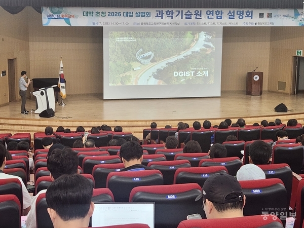 충북도교육청은 5일 교육연구정보원에서 교사, 학생, 학부모 400여명을 대상으로 충북교육청 주관 대학초청 2026 대입 설명회 일환으로 ‘과학기술원 연합 설명회’를 개최했다.