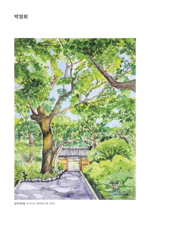 이번 전시 주제는 ‘수채화의 흐름과 번짐’으로, 건축과 미술의 경계를 넘나드는 건축사들의 예술적 시선을 수채화라는 매체로 풀어낸 작품들이 선보인다. 물감의 번짐과 투명한 색감이 만들어내는 자연스러운 표현 속에 작가들의 건축적 사유가 담겼다.