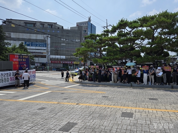 진천 풍림아이원 트리니움 아파트 입주예정자협의회는 8일 진천군청 정문에서 집회를 열고 합동점검 하자사항을 보수할 것과 입주 지연 피해보상 대책을 마련할 것을 진천군과 대명수안에 요구하고 있다. 이 아파트는 진천읍 교성리 일원 35만5227㎡의 부지에 2540가구 규모로 조성 중이다.