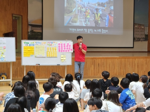 주중초는 이날 ‘불량한 자전거 여행’의 저자 김남중 작가를 초청해 ‘충북에서 북극까지’를 주제로 특별 강연을 진행했다.
