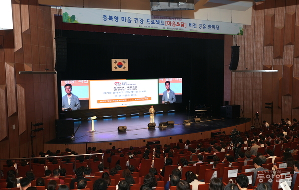 충북교육청은 9일 교육문화원 대공연장에서 도내 교직원과 학생, 학부모 800여명이 참여한 가운데 충북형 마음 건강 프로젝트 ‘마음쓰담 비전 공유 한마당’을 개최했다.