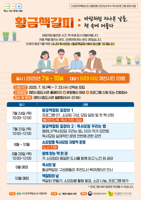 제천시립도서관이 문화체육관광부와 한국출판문화산업진흥원이 후원하는2025년 ‘우수독서프로그램 공모사업’에 선정됐다.