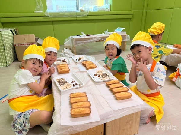 봉명초병설유치원(원장 이명희)이 10일 유치원 원아를 대상으로 ‘전통한과를 활용한 휘낭시에 만들기’ 요리 체험활동을 실시했다.