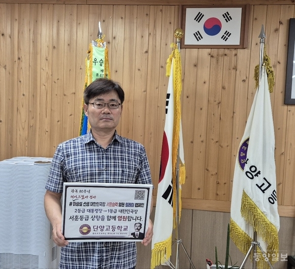 박승룡 단양고 교장이 15일 이상설 선생 대한민국장 서훈 승격 염원 릴레이 캠페인에 동참하며, 지역의 대표 독립운동가인 이상설 선생의 정신을 기리는 데 뜻을 함께했다.<사진>