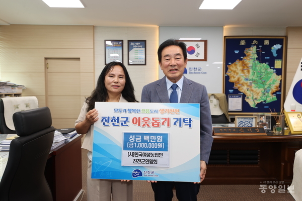 진천군 (사)한국여성농업인 진천군연합회(신임회장 김순성)는 15일 진천군을 찾아 이웃돕기 성금 100만원을 기탁했다. 진천군
