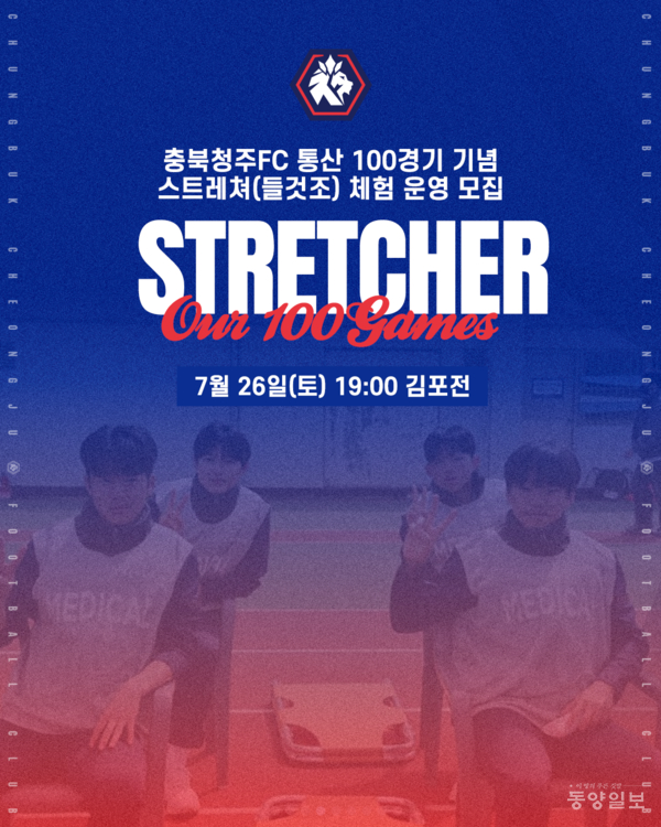 충북청주FC는 오는 26일 청주종합경기장에서 열리는 김포FC와의 하나은행 K리그2 2025 22라운드 홈경기에서서 '스트레처(들것조)', '플레이어 에스코트' 체험을 제공한다.