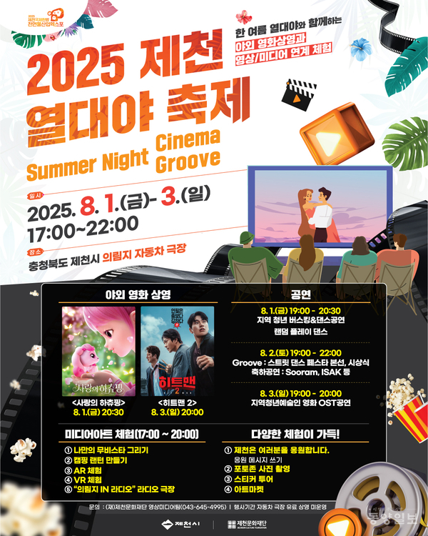 제천문화재단(이사장 김상수)은 오는 8월 1~3일 매일 오후 5시~밤 10시 의림지 자동차 극장 일원에서 진행되는 '2025 제천 열대야 축제'의 다채로운 문화 프로그램을 공개했다.