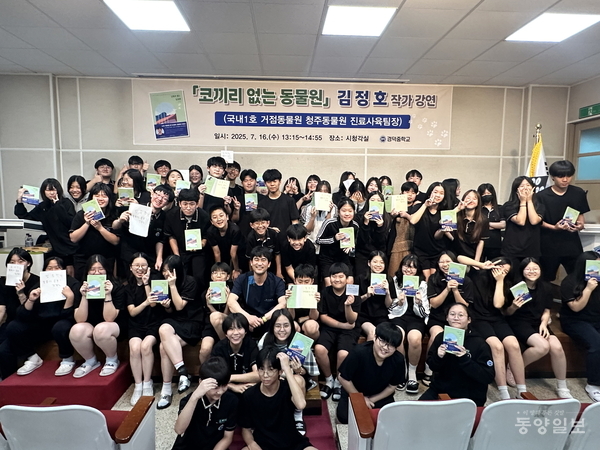 경덕중이 16일 <코끼리 없는 동물원>의 저자이자 청주동물원 진료사육팀장으로 재직 중인 김정호 수의사를 초청해 ‘현대 동물원의 역할’을 주제로 특별 강연을 진행했다.