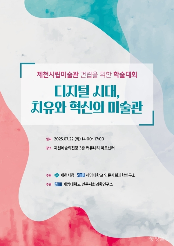 제천시와 세명대 인문사회과학연구소는 오는 22일 제천예술의전당 커뮤니티 아트센터에서 ‘제천시립미술관 건립을 위한 콘텐츠 학술포럼’을 연다.