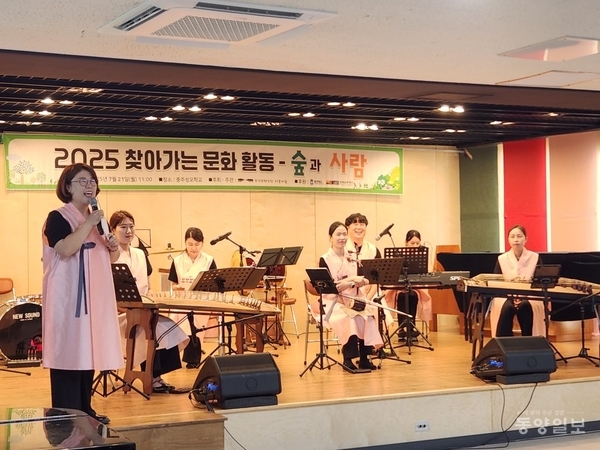 충주성모학교는 21일 본교 강당에서 국악관현악단 ‘더불어숲’을 초청해 찾아가는 국악 공연을 진행했다.