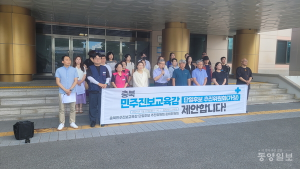이들은 덧붙여 “민주적이고 진보적인 가치를 공유하고 실천해 온 충북지역의 단체들이 함께 단일한 교육감 후보를 선출하고 지역 교육의 변화를 이끌어야 할 때”라며 “바람직한 교육자치의 모습을 만들어내고 이를 실현할 충북교육감 후보의 단일화를 공정하고 투명한 방법으로 추진할 ‘충북민주진보교육감 단일후보 추진위원회’ 구성을 제안한다”고 밝혔다.