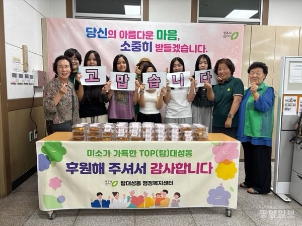 프로그램에 참여한 학생들은 직접 만든 과자를 학교 환경정리와 폐지수거 때마다 도움을 받았던 탑대성동 행정복지센터 새마을 남녀지도자회에 나눠줬다.