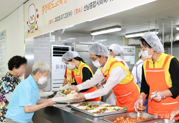 무더운 여름 심신을 보양할 수 있는 장어를 주메뉴로 250인분의 음식을 준비했고, 윤건영 교육감을 비롯한 봉사자들은 수곡동 일대 독거노인 등 취약계층 주민들에게 직접 배식을 하며 온정을 나눴다.