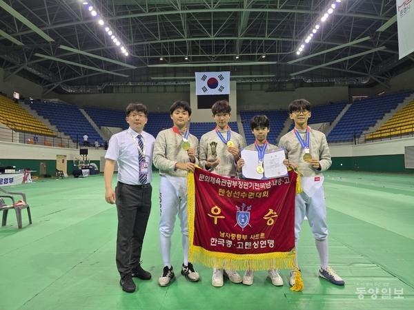서현중 펜싱부는 23일 국군체육부대 선승관에서 열린 남중부 사브르 단체전 결승에서 하남중(광주)을 45:42로 꺾으며 올해 첫 금메달을 목에 걸었다.