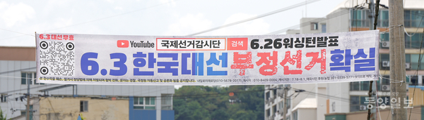 23일 청주지역 곳곳에 ‘부정선거 확실’ 등 선거 결과를 부정하는 내용의 현수막이 설치되 있어 시민들의 눈살을 찌푸리게 하고 있다. 손상훈 기자 mjsh9370@dynews.co.kr