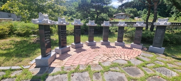은행나무에서 100여m 생가터에 세워진 시비는 후손들이 제작한 것이라고 했다. ‘임벽당 정원’ 표지판에 그의 시비가 줄지어 서 있다. 현재는 16대 후손 유희춘씨가 귀향해 정원을 돌보고 있어 공원 주변이 정갈했다