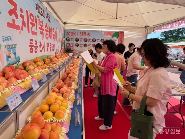 세종시는 지난 25일 세종시민운동장에서 23회 세종 조치원복숭아 축제 부대행사로 ‘세종 조치원복숭아 품종 전시 및 품평회’를 했다.