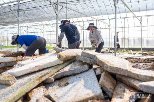 29일 이재영 군수와 공무원 20여명은 예산군 오가면 일대 침수 피해 농가를 찾아, 비닐하우스 잔해와 토사, 폐기물 등을 정리하며 복구 작업에 힘을 보탰다.
