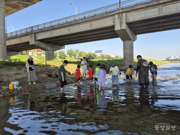 ‘무심천 아래, 생명이 흐르다’는 무심천 흥덕대교 인근에서 족대를 이용해 수서생물을 직접 채집하고, 토종 물고기 관찰 및 종 다양성 조사를 통해 하천 생태계를 체험하는 프로그램이다.
