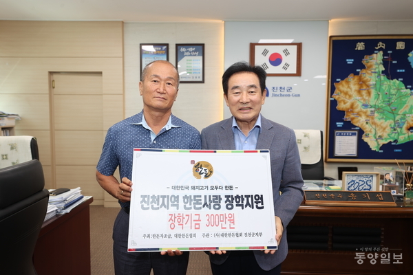 (사)대한한돈협회 진천군지부(지부장 김병민)는 30일 진천군을 찾아 (재)진천군장학회에 장학금 300만원을 기탁했다. 진천군