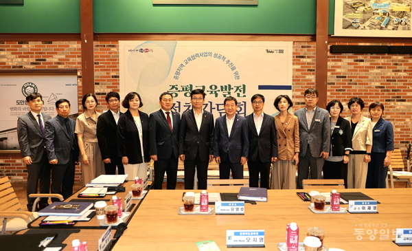 충북도교육청과 증평군이 5일 증평 도안창고플러스에서 열린 정책간담회에서 증평교육지원청 건립에 뜻을 같이 하고 강하게 드라이브를 걸었다.