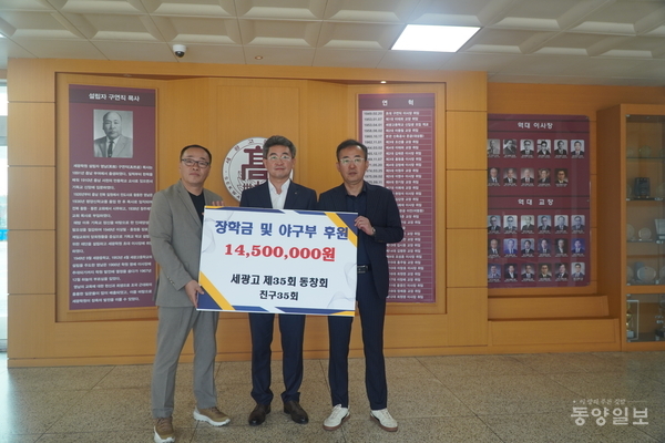 35회 동문들은 “세광고에서 받은 사랑과 가르침을 후배들에게 돌려주고 싶었다”며 “지역사회와 국가를 이끄는 인재로 성장하길 바라는 마음으로 이번 장학금을 마련했다”고 전했다.