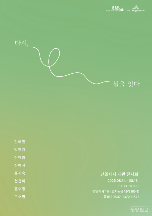 시 관계자는 “산일제사의 첫 개관전시가 공간의 재탄생과 신진 예술가들의 성장이라는 두 축을 연결 짓는 상징적인 전시가 되기를 바란다”며 “많은 시민이 이 특별한 공간을 찾아 기억과 예술이 만나는 경험을 하길 기대한다”고 말했다. 세종 윤여군 기자 yyg590@dynews.co.kr