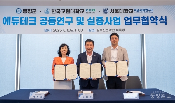 군 관계자는 “이번 협약은 증평의 미래 교육과 산업을 동시에 견인할 중요한 출발점”이라며 “교원대와 서울대의 우수한 연구 역량과 증평군의 정책 추진력을 결합해, 지역 중심의 에듀테크 생태계를 성공적으로 조성하겠다”고 말했다.