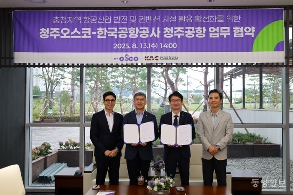 이번 협약은 청주국제공항과 청주오스코의 협력 체계 구축, 항공과 컨벤션 산업의 시너지 도모와 지역경제 활성화를 위해 마련됐다.